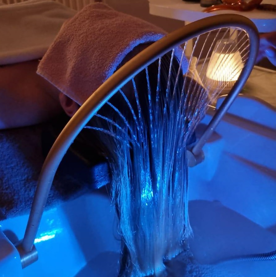• Massage du cuir chevelu : sous pluie d’eau pour stimuler la micro-circulation.